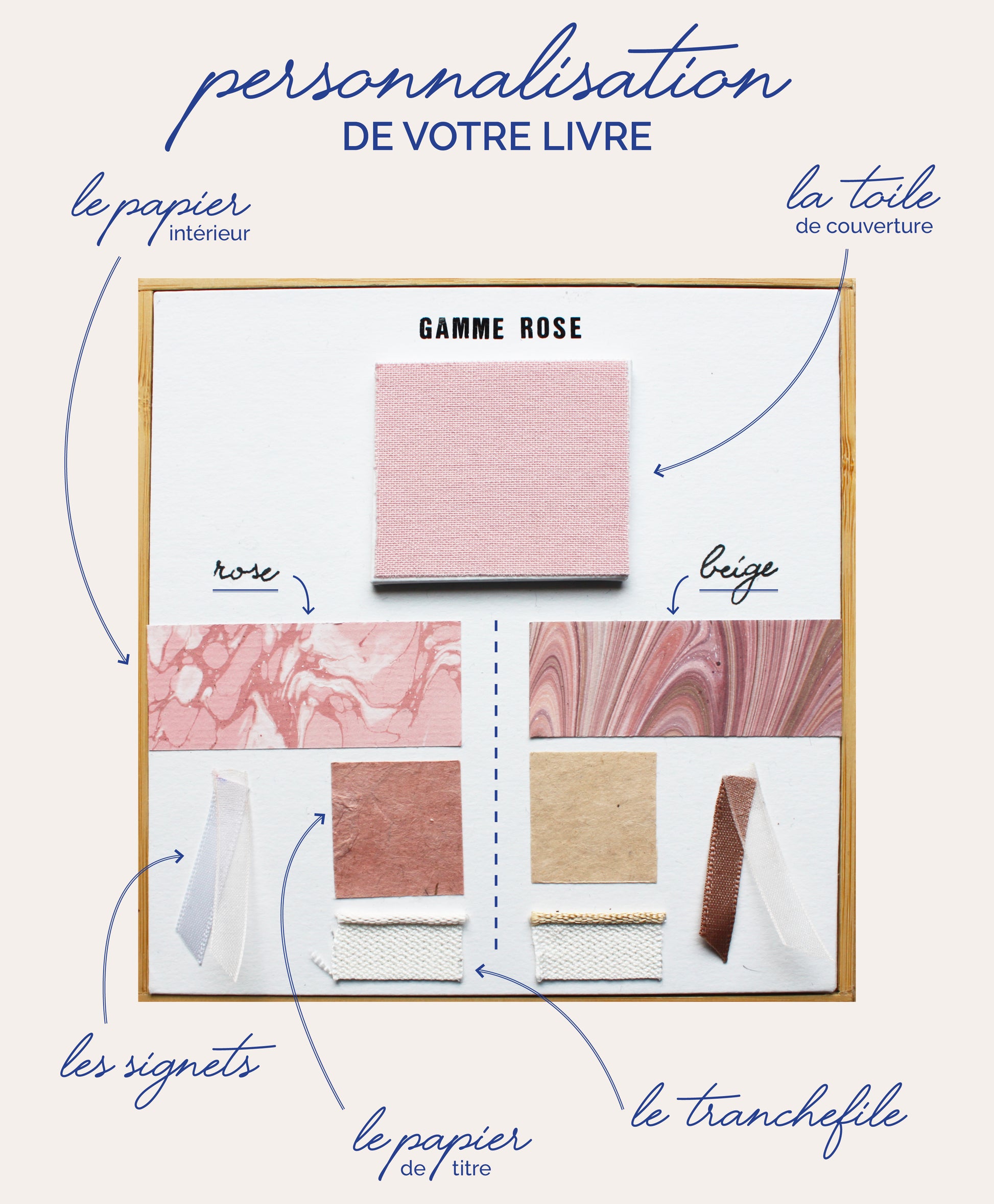 La couverture, les papiers, le titre... Personnalisez votre livre selon les propositions, et si vous vous sentez l'âme plus créative, n'hésitez pas à m'écrire :)
